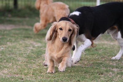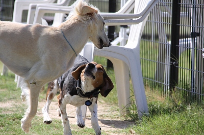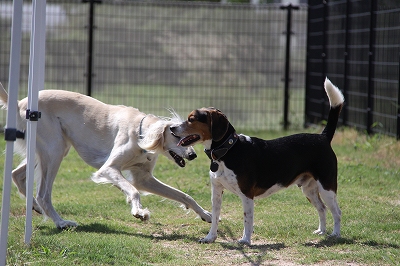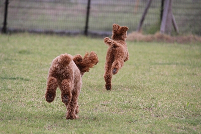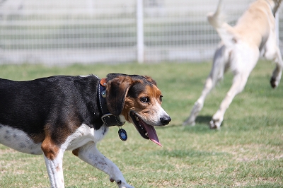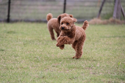 モモタロウ君とチロ君、はしって遊んでましたよ~!