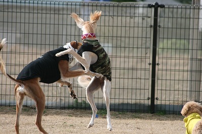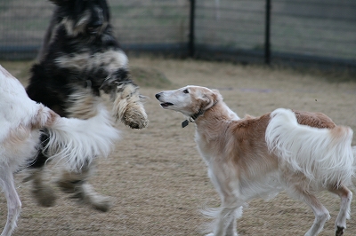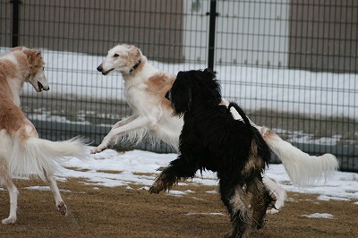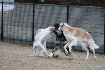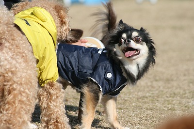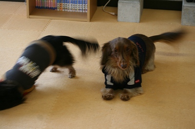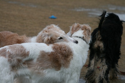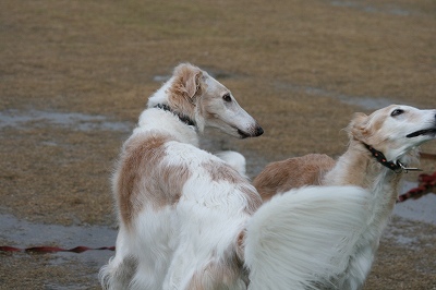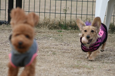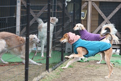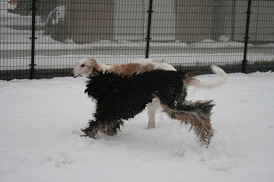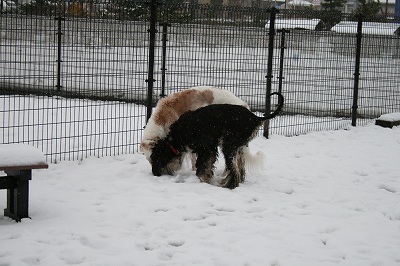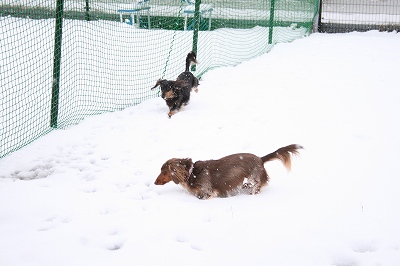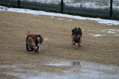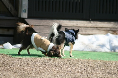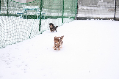 けど、やっぱり長時間は寒いので、止んだ隙にでて、そのあとは管理棟で2匹でガウガウ遊んだりしてますよ!