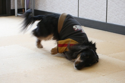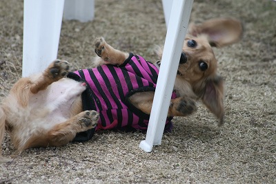 スーちゃん、雨がザーザーになったから中に入れようと思っても最後まで走り回ってます(笑)
