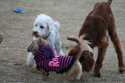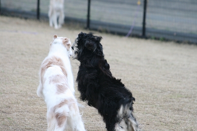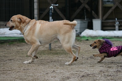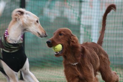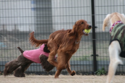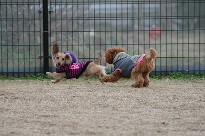 はたまた止んだりで、お泊りのワンちゃんたちは隙をみてランで遊んでます