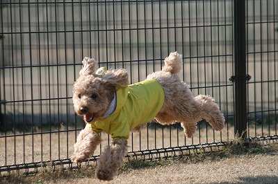 アモ君、さっそくランにでて2回いいウンチとオシッコでましたよ