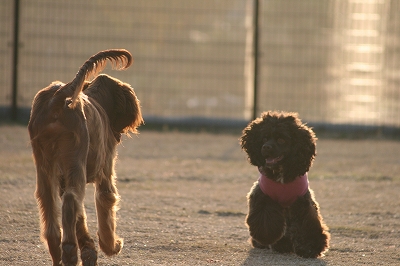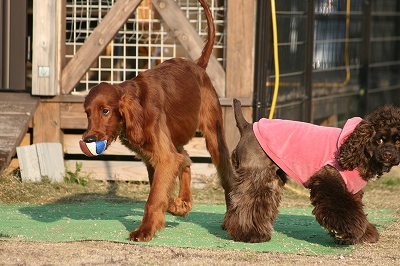 うららがボールを追いかけるとココアちゃんも走る