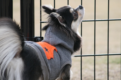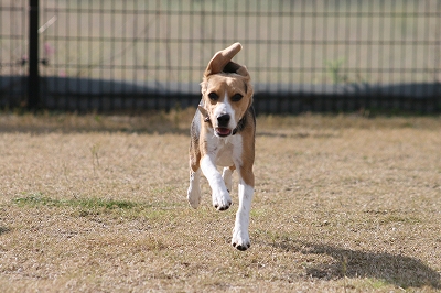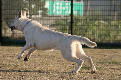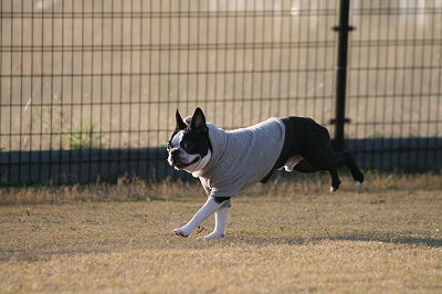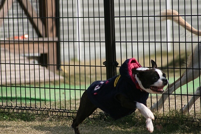 フェンス越しに爆走中のレオン君