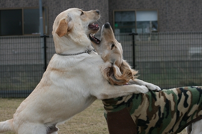 』ですか?レオン君、すばらしい顔でワンワンしてます