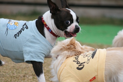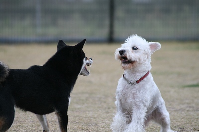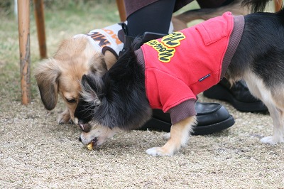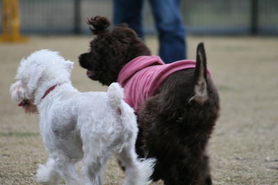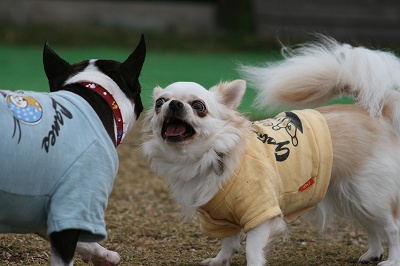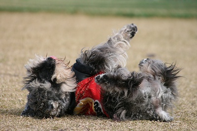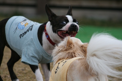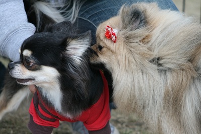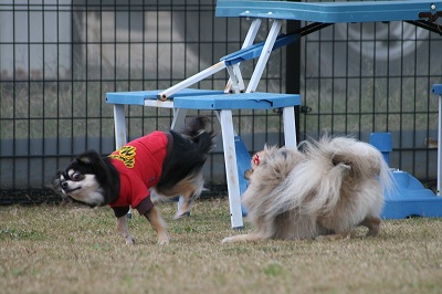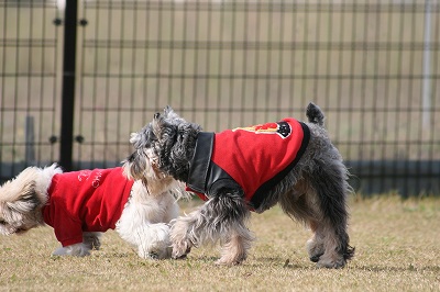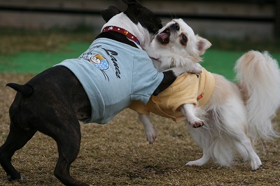 仲良しさんなマルコ君とモニカちゃん、立ち上がって取っ組み合いの遊びをしてましたよ