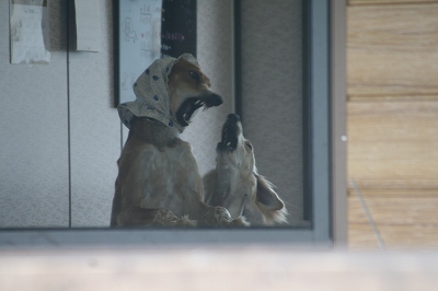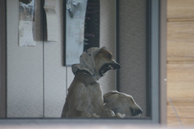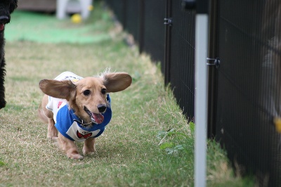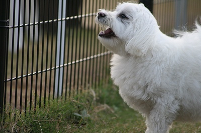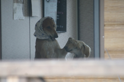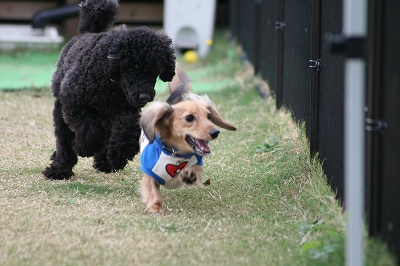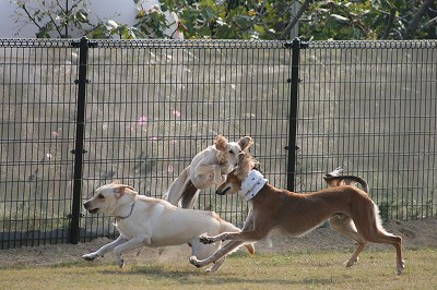 フェンス越しにねね・だりと走るレオン君