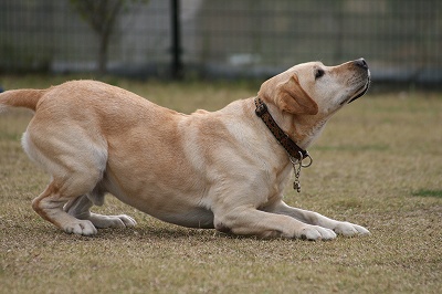 おもちゃをまだかまだかと待つラブ君
