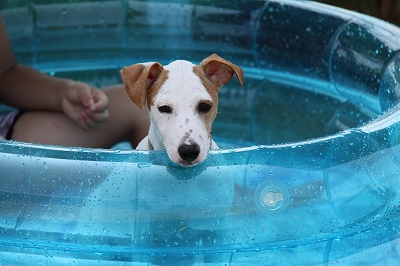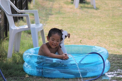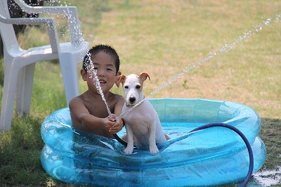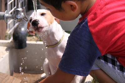 ランに来てすぐに水遊びー!