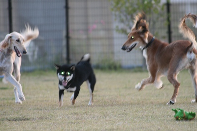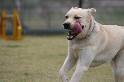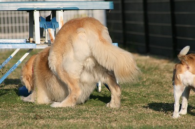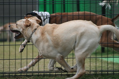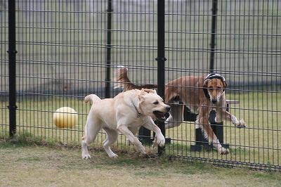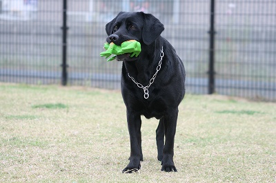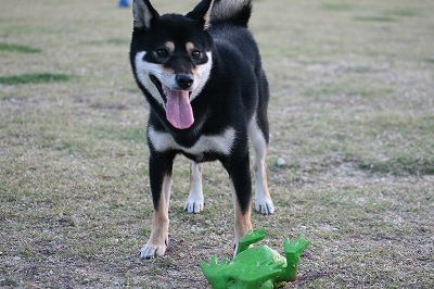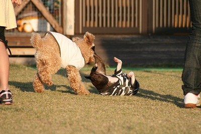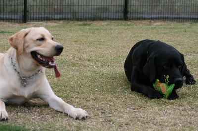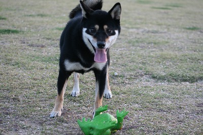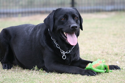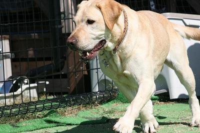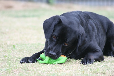 そしてこちらはランに入るなりかえるを放さなくなってしまったラブちゃん