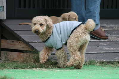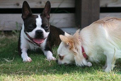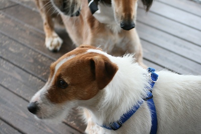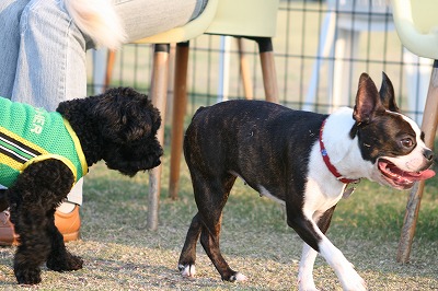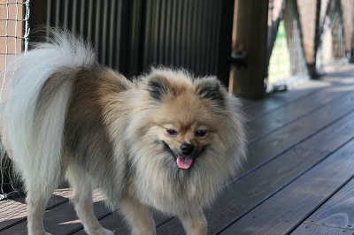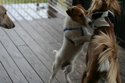 うちの子と遊びたがってたので、デッキでちょっとだけ一緒にしてみたら