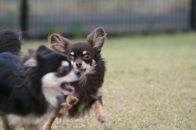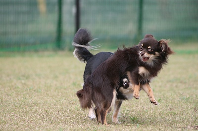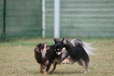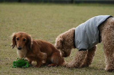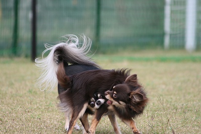 とおもいきや、後ろから海君の後ろ足にかぶりつく鈴君