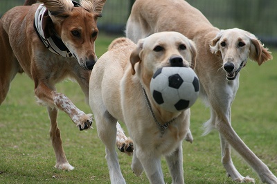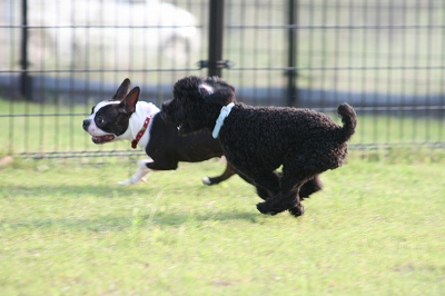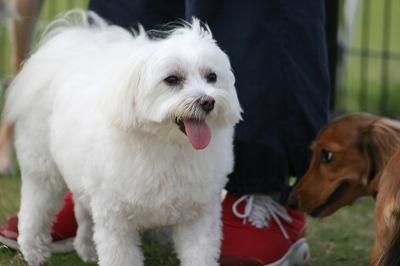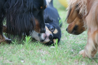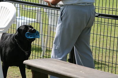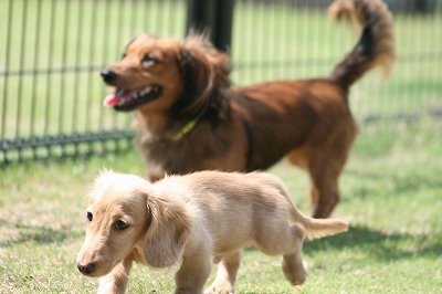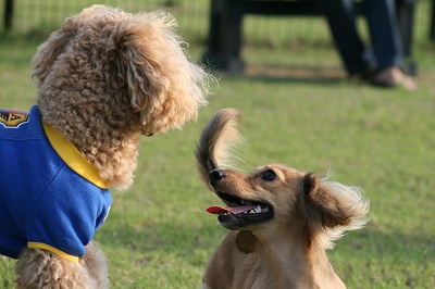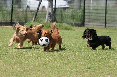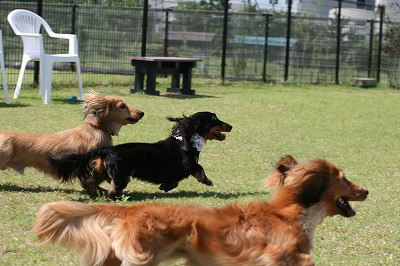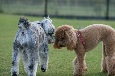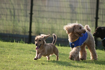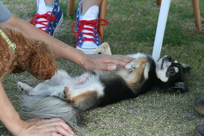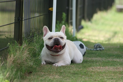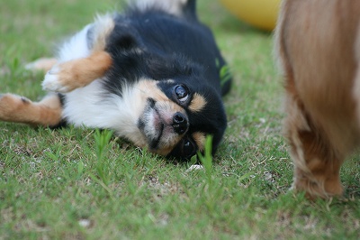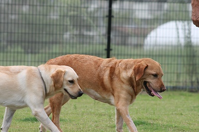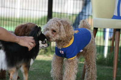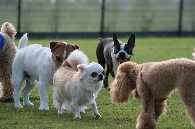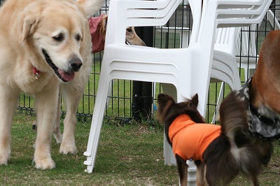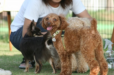 小型犬もラブちゃんのいるフリーエリアに入りみんなで遊んでる中ラブちゃんはピーピー中