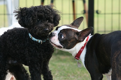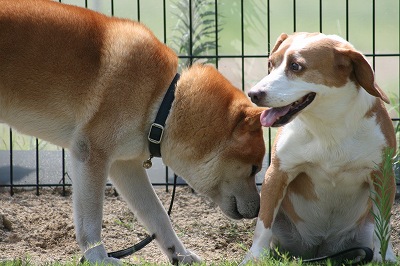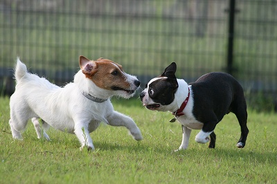 そしてこちらは今日もバッタリジャックラッセルさんと遭遇なごろうちゃん