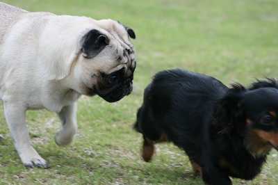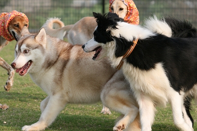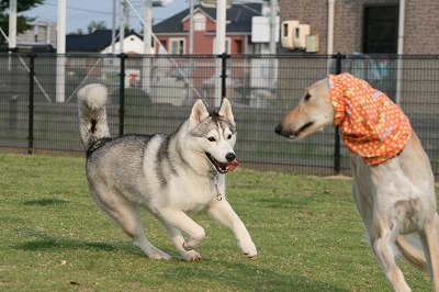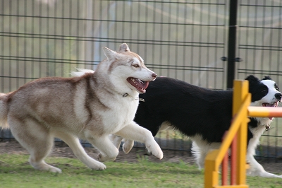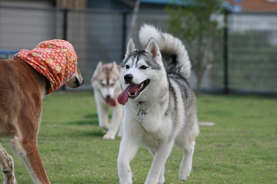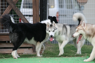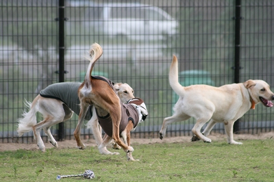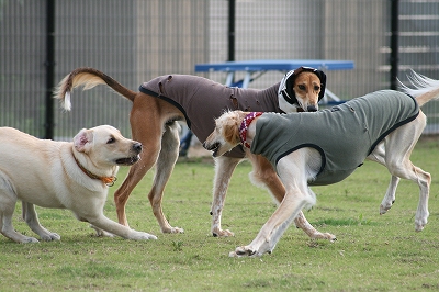ランに入るとたん爆走しだす3匹です