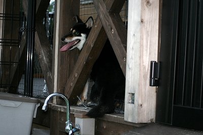 日向ちゃん、パラパラ雨が降ったときカミナリがなるのを察したのかこんなところにのぼって帰ろうとしてました