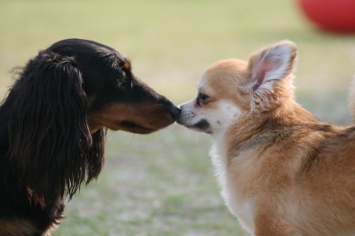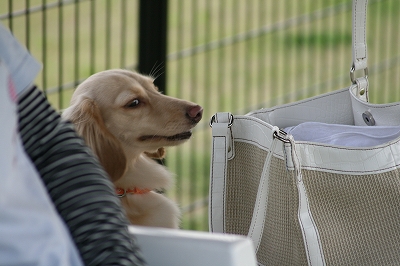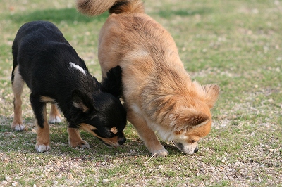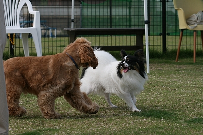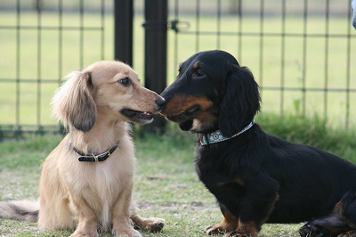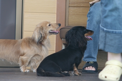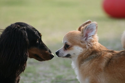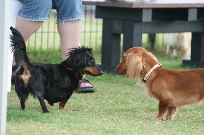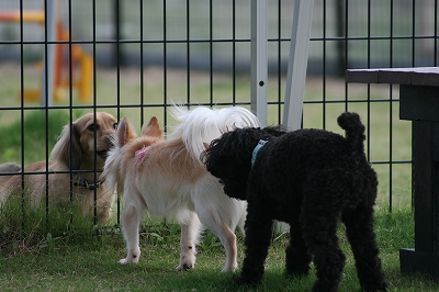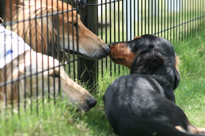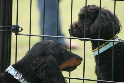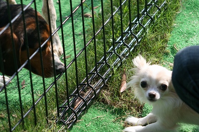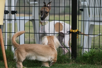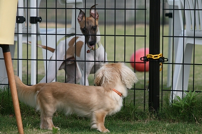 吾平くん、フェンス越しにココア君とこんにちは~