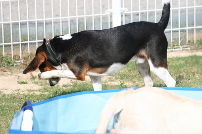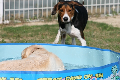 潜水を始めたカン太君の水しぶきがかかって