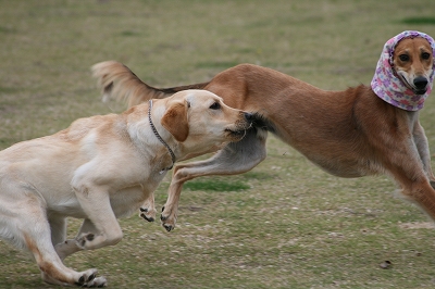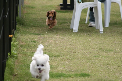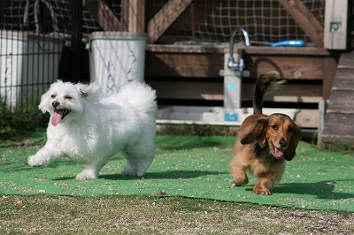 いつもはイヤイヤーなはなちゃんが、珍しくパン君を追いかけて走ってました