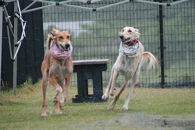 きくちゃんもさくらちゃんについて走る