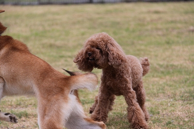 とうれしそうにぷりぷりシッポを振って喜んでるし、エルマー君を追いかけ走り~お預かりだった子に追いかけてもらって走ったりと大忙しでした(笑)