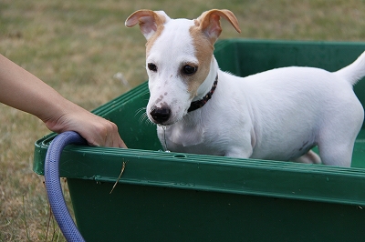 預かったときに「チロって水で遊ぶんだろうか・・・?」って言われてたので足先だけつけてみたら・・・