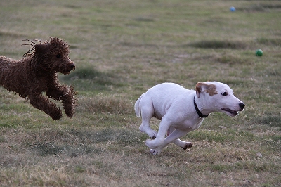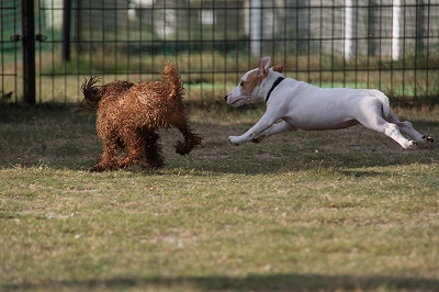 はじめは威嚇して逃げて逃げて大変でしたが今はロングリードに繋いでますので捕まえれます(笑)
