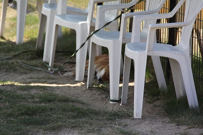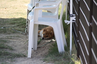 今はPM5:00 日陰の涼しいほうにロングリードで自由にできるようにしています。