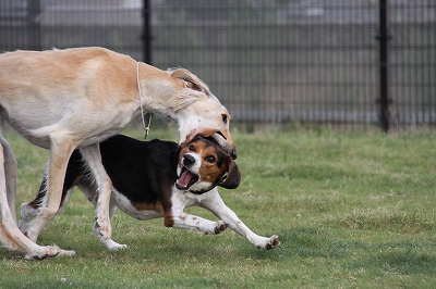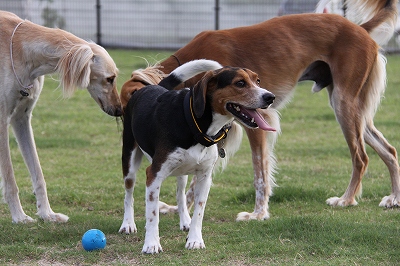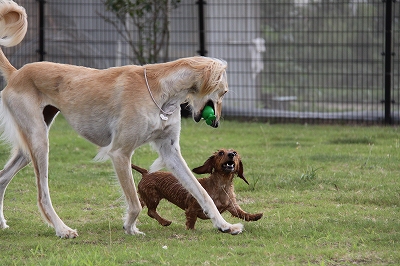 小型犬とも遊べますが遊び方が豪快かつ叱られてもめげない子です。