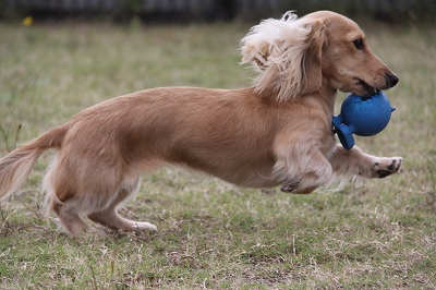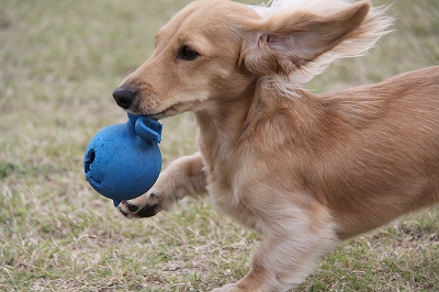ボールをくわえて走ってみる~!