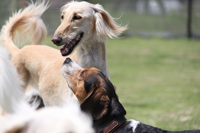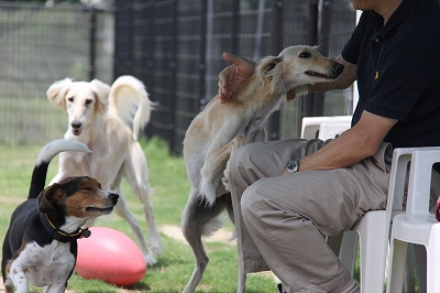 「ねねちゃん、自分が走って満足したからって勝手にランの入り口を開けてエアコンの部屋に帰ったりしたらだめだよ。」