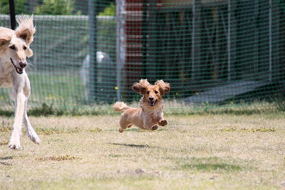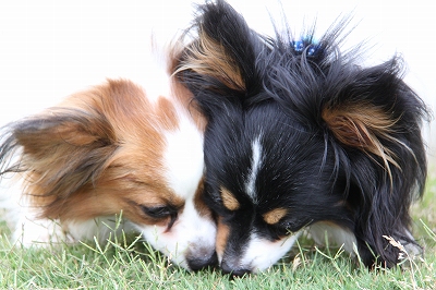 無事引きとりに行き、タロウ君はトリミングに直行、クイール君はその間に遊びに来てくれたというわけです!