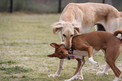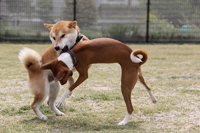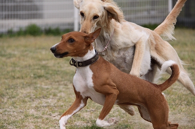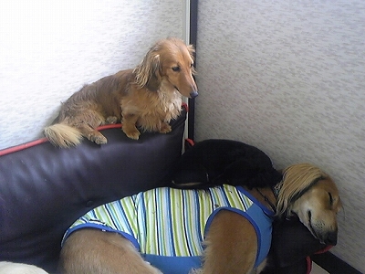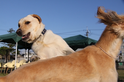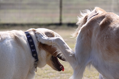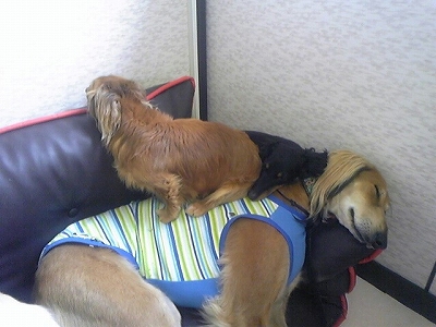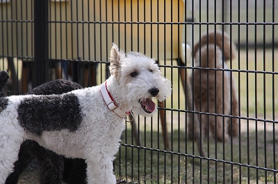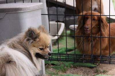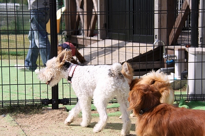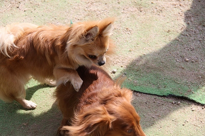 ケイくん、他の子に乗ろうとするのでその子が遊び終わるまでリードでくくったら文句をいってました(笑)