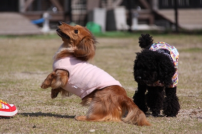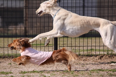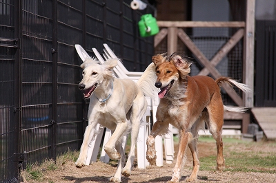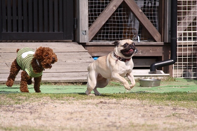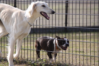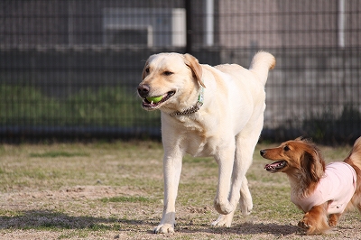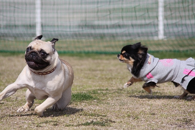 一方るーちゃんはフェンス越しに美楽ちゃんと追いかけっこ!!
