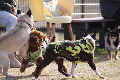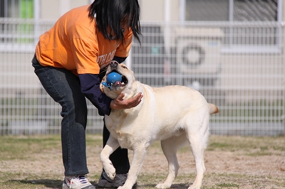 グーフィくんのお母さんがボールを投げてあげるっていってるのに離さないカン太君