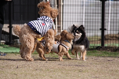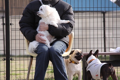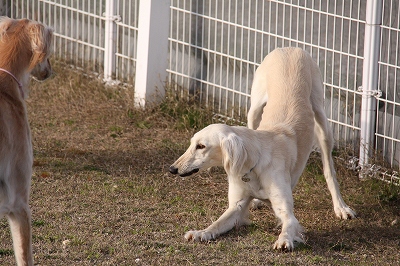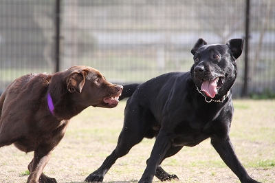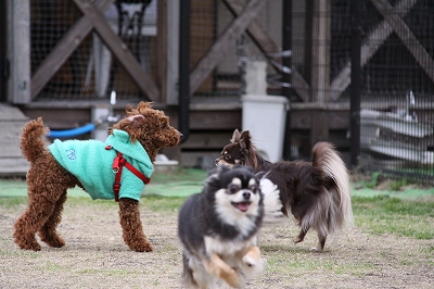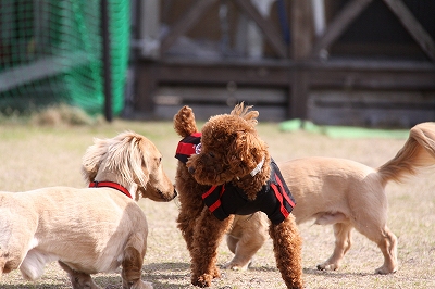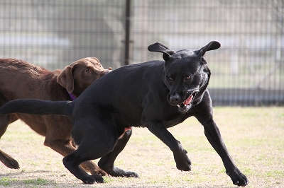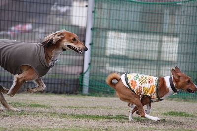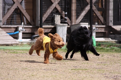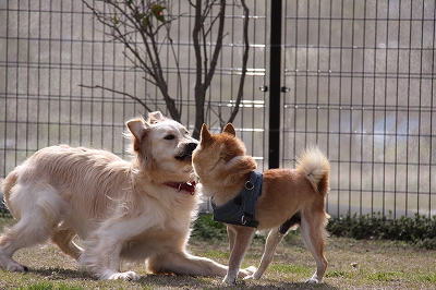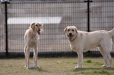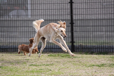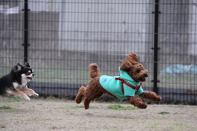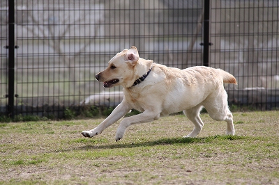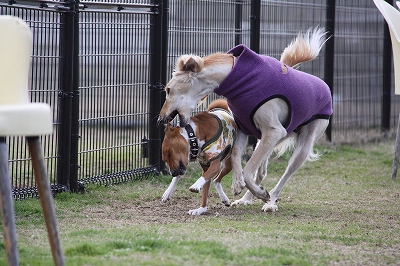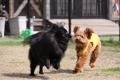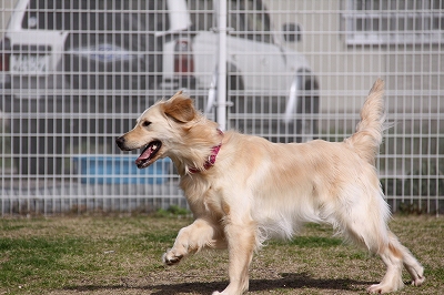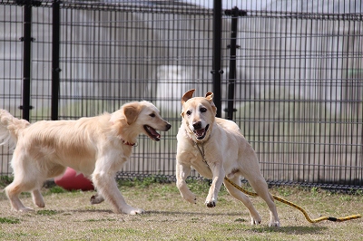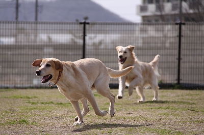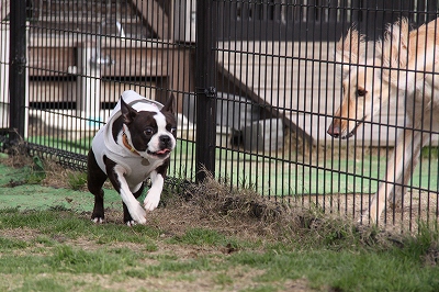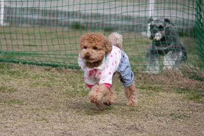 サクラちゃんと一緒にフェンス越しにはしってます