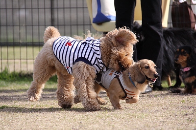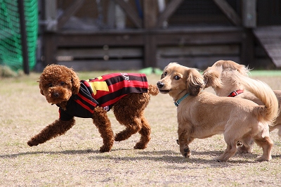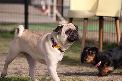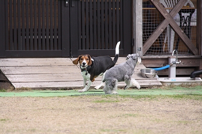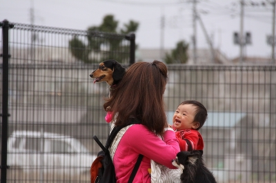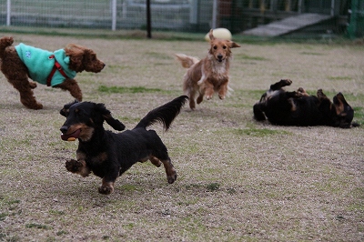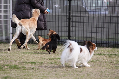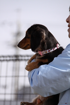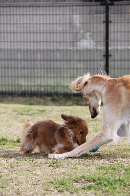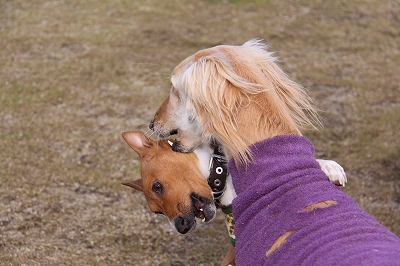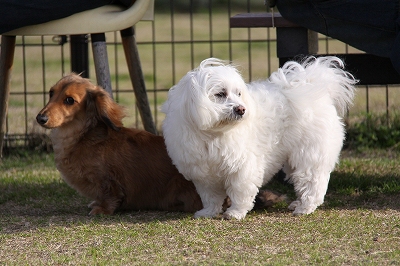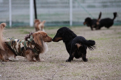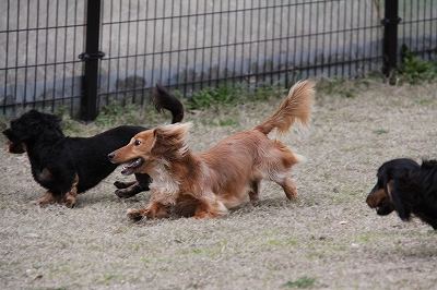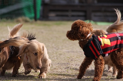 大型犬にも負けないダックスうらら