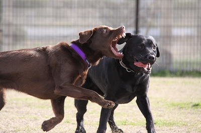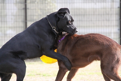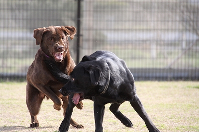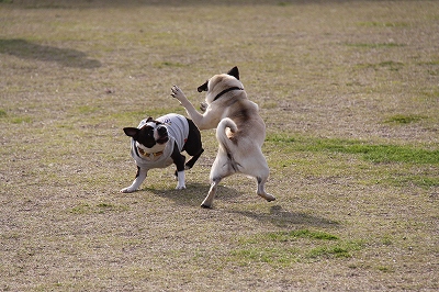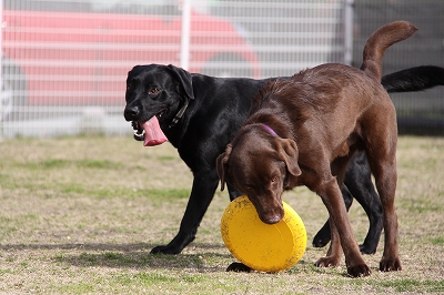 2匹で真剣にボールを追いかけてます!!