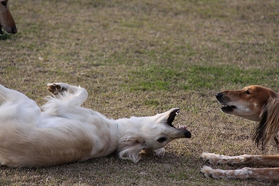 寝転んで遊ぶんじゃなくて走って遊んでください!