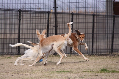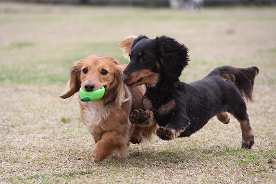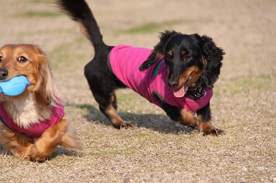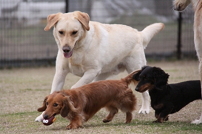 小さい2匹相手に本気でボールを取り合ってますけど(笑)
