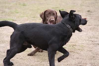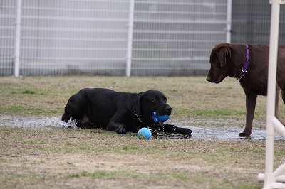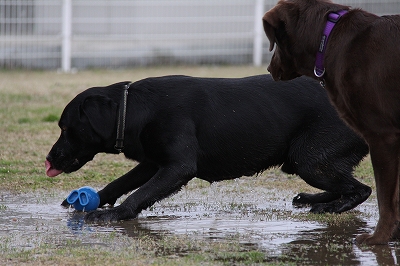フリーエリアに残っていた2個の水溜りで遊んでおられるクイールさんが・・・