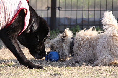 そしてクイール君も来てくれて2匹でボールの追いかけっこ