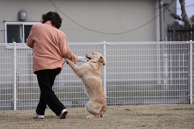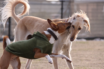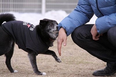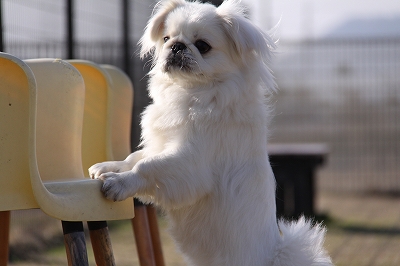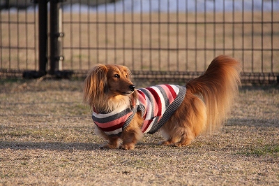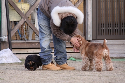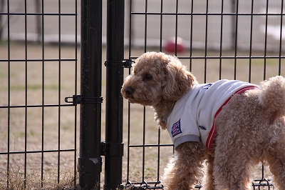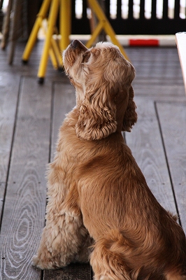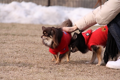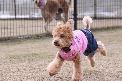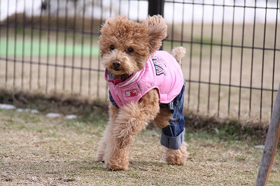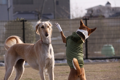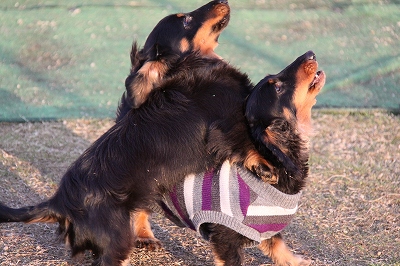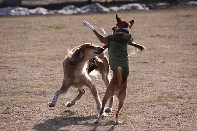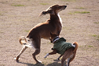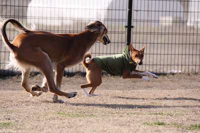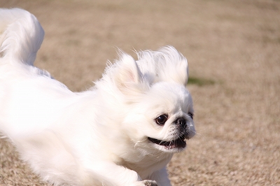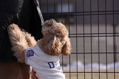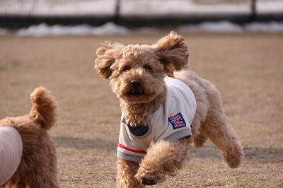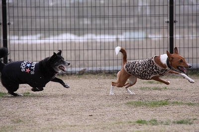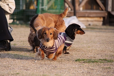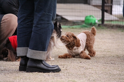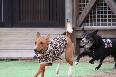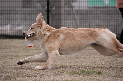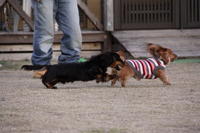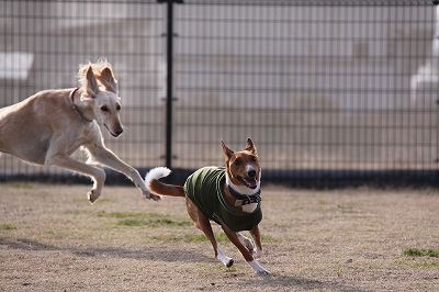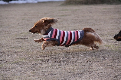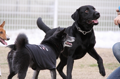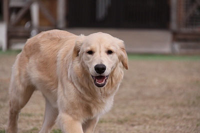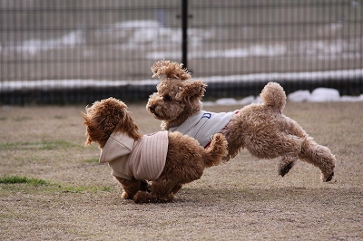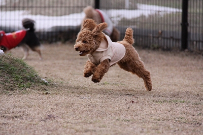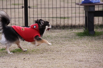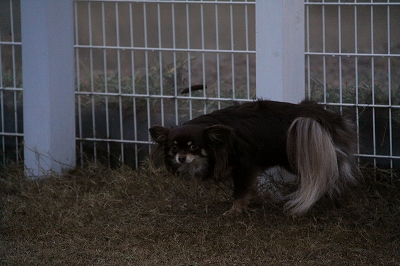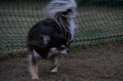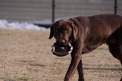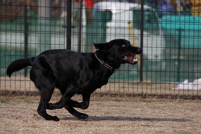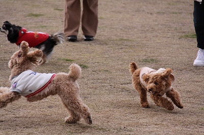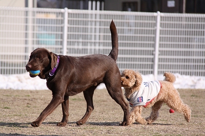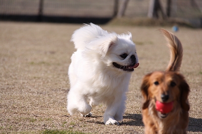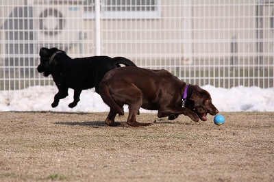 張り切ってボールをゲットするダン君の後ろではどこかに向かって行くクイール君
