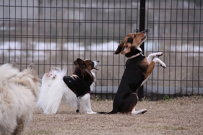 そして今度は小型犬の方へ行き、地面にウニウニするチロ君