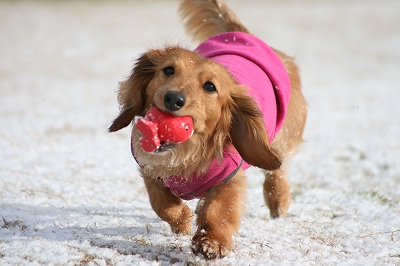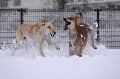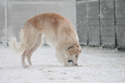 雪が大好きクイール君、大興奮で遊んでます