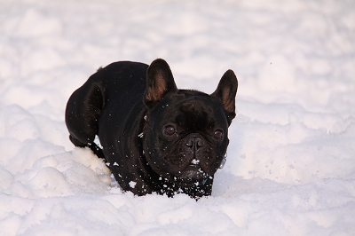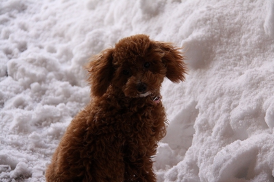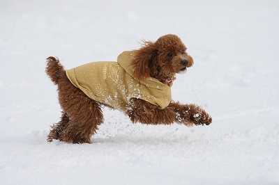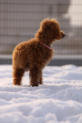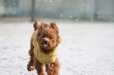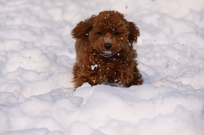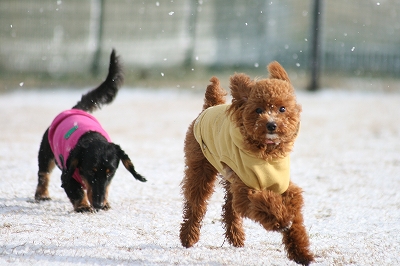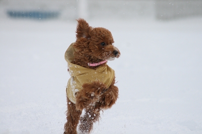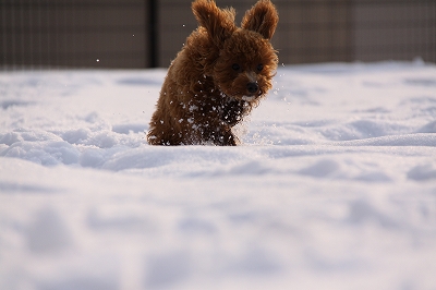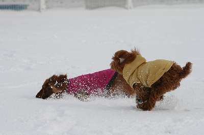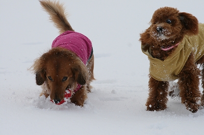 チョコちゃん、サクサク雪の中を頑張ってうららを追いかけてます