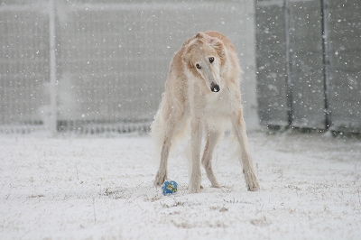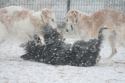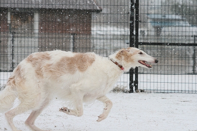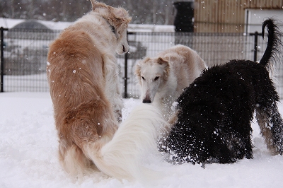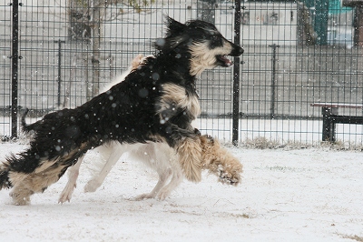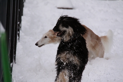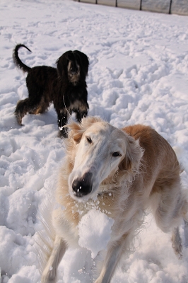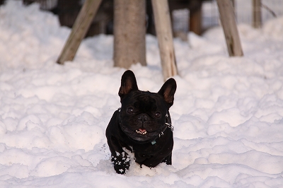 足の毛に雪球たっくさんつきますけど楽しそうに走ってます~
