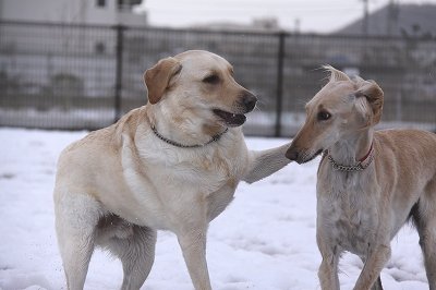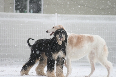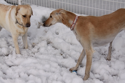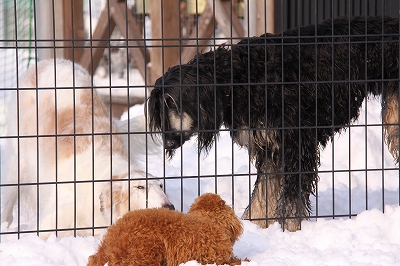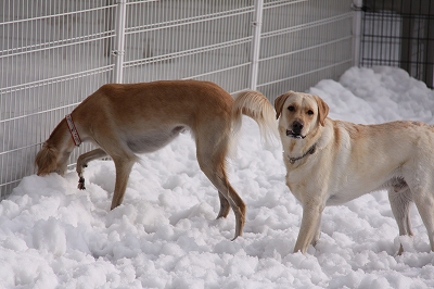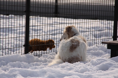 まずは雪の中遊びに来てくれたクイール君とタロウ君
