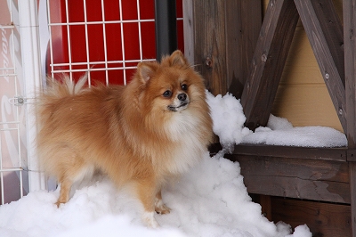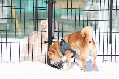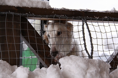 雪がすごいので小型犬の子はデッキを雪かきしそこでフリーランにしてます