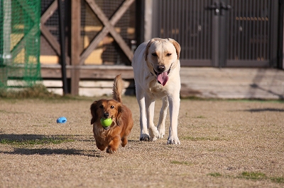 ねねはゴンゴン頭に玉をぶつけながらも頑張ってレトリーブ!