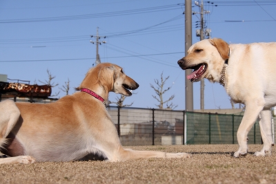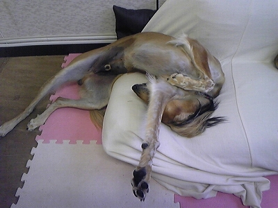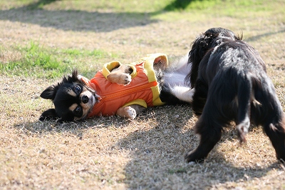 ゴロリのまんま戯れるアポロくんとうたちゃん